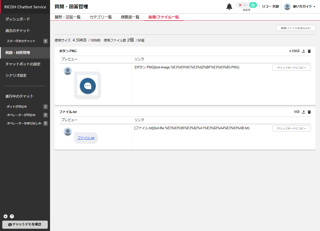 ファイルと画像の識別は自動で行われます。画像の拡張子は".jpg"、".jpeg"、".png"、".gif"です。(大文字と小文字は区別しません。)
