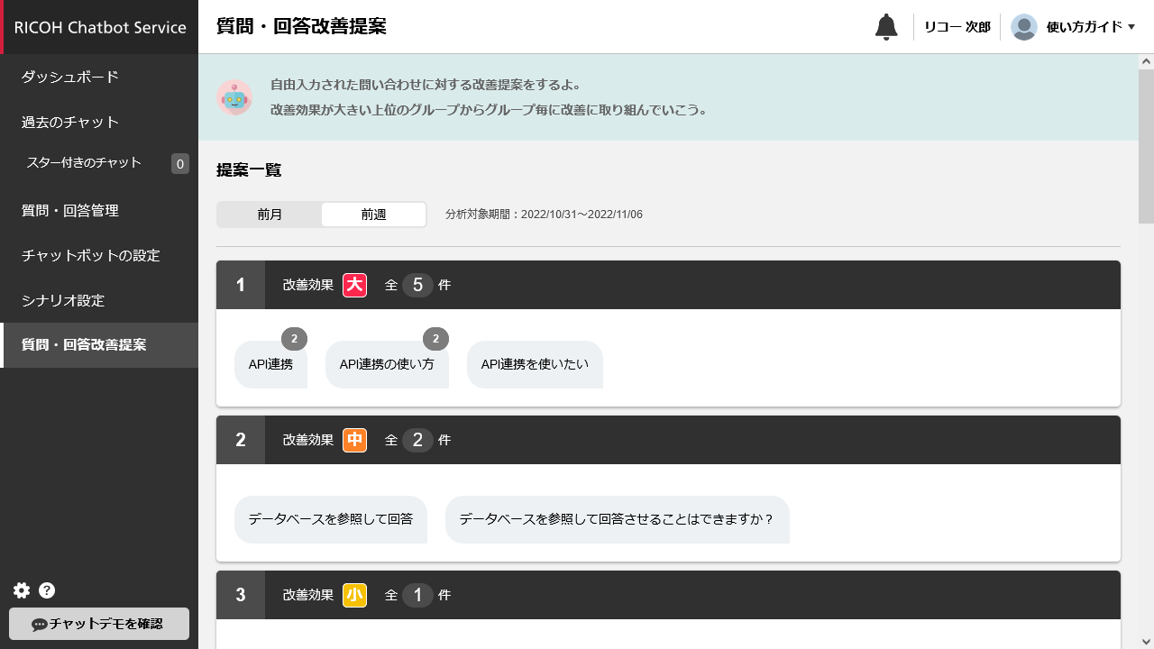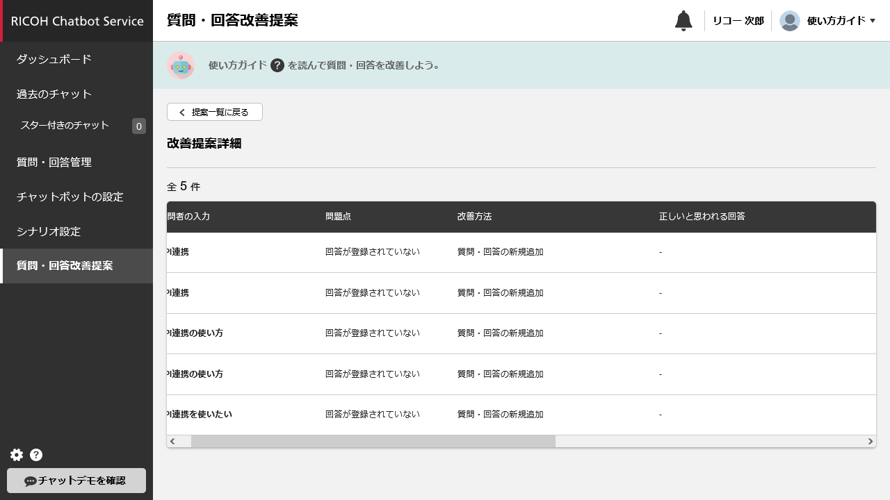 質問・回答改善提案オプションを契約中の方のみが利用できます。