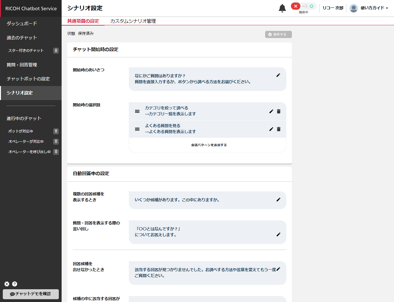チャットボットとの会話や発言内容をより細かく設定するには、会話のパターン(シナリオ)を作成または編集する必要があります。シナリオを作成または編集することで、次のようなことができるようになります。