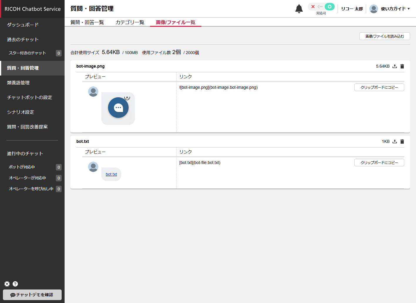 ファイルと画像の識別は自動で行われます。画像の拡張子は".jpg"、".jpeg"、".png"、".gif"です。(大文字と小文字は区別しません。)